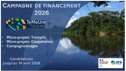 Dans le cadre de la programmation annuelle 2026, l’OFB et le comité des partenaires du programme TeMeUm lancent une campagne de financement de micro-projets visant à soutenir la montée en capacité des acteurs de la protection et de la restauration de la biodiversité des territoires ultramarins au travers de la mise en œuvre d’actions concrètes. La campagne s’organise en trois dispositifs :