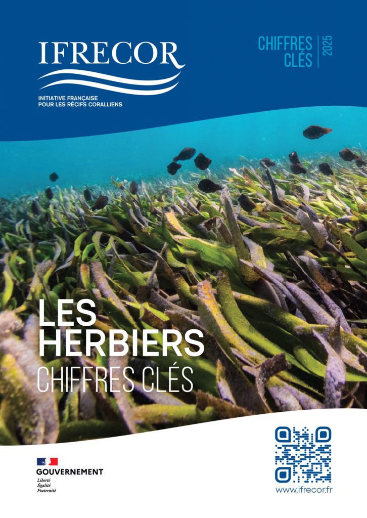 Les herbiers sont quant à eux des « prairies » marines, ils regroupent de nombreuses espèces de plantes qui poussent sous l’eau. Situés entre le récif et la mangrove, ils abritent également une faune et une flore diversifiées : oursins, concombres de mer, étoiles de mer… Ils sont notamment des nurseries pour de nombreux juvéniles de poissons des récifs, leur offrant abri et nourriture. Les herbivores marins comme le dugong ou le lamantin par exemple raffolent de ces prairies marines.